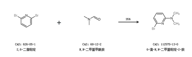 2.通过2,6-二溴吡啶和N,N-二甲基甲酰胺合成6-溴-N,N-二甲基吡啶-2-胺,收率约35%;