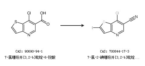 1.通过7-氯噻吩并[3,2-b]吡啶-6-羧酸合成7-氯-2-碘噻吩并[3,2-b]吡啶-6-甲腈