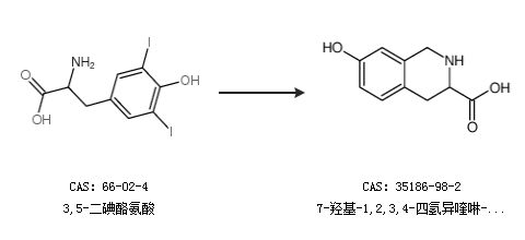 2.通过3,5-二碘酪氨酸合成7-羟基-1,2,3,4-四氢异喹啉-3-羧酸