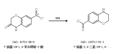 1.通过7-硝基-2H-1,4-苯并噁嗪-3-酮合成7-硝基-3,4-二氢-2H-1,4-苯并噁嗪,收率约99%;
