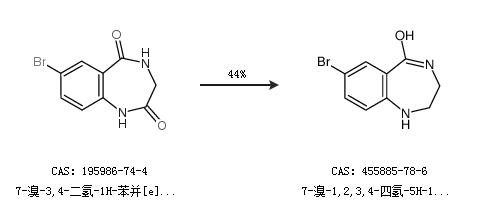 1.通过7-溴-3,4-二氢-1H-苯并[e][1,4]二氮杂卓-2,5-二酮合成7-溴-1,2,3,4-四氢-5H-1,4-苯并二氮杂革-5-酮,收率约44%;