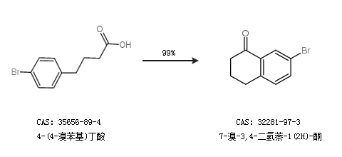 2.通过4-(4-溴苯基)丁酸合成7-溴-3,4-二氢萘-1(2H)-酮,收率约99%;