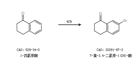 1.通过1-四氢萘酮合成7-溴-3,4-二氢萘-1(2H)-酮,收率约42%;
