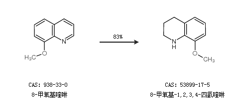 1.通过8-甲氧基喹啉合成8-甲氧基-1,2,3,4-四氢喹啉,收率约83%;