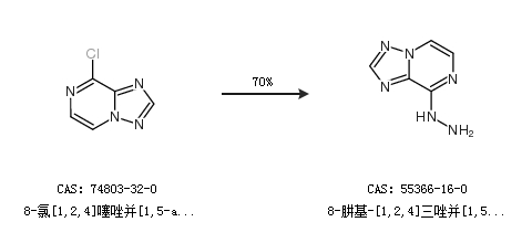 1.通过8-氯[1,2,4]噻唑并[1,5-a]吡嗪合成8-肼基-[1,2,4]三唑并[1,5-a]吡嗪,收率约70%;