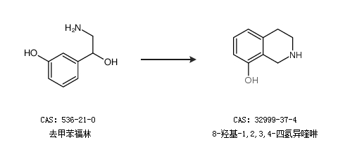 1.通过去甲苯福林合成8-羟基-1,2,3,4-四氢异喹啉