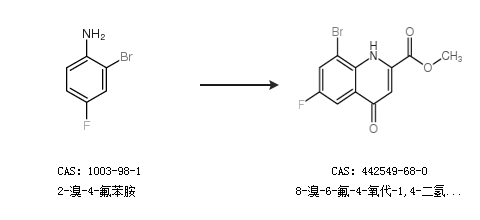 1.通过2-溴-4-氟苯胺合成8-溴-6-氟-4-氧代-1,4-二氢喹啉-2-羧酸甲酯