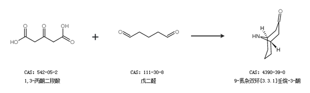 1.通过1,3-丙酮二羧酸和戊二醛合成9-氮杂双环[3.3.1]壬烷-3-酮