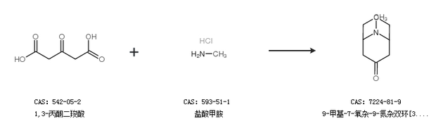 2.通过1,3-丙酮二羧酸和盐酸甲胺合成9-甲基-7-氧杂-9-氮杂双环[3.3.1]壬烷-3-酮
