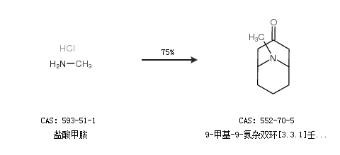 1.通过盐酸甲胺合成9-甲基-9-氮杂双环[3.3.1]壬-3-酮,收率约75%;