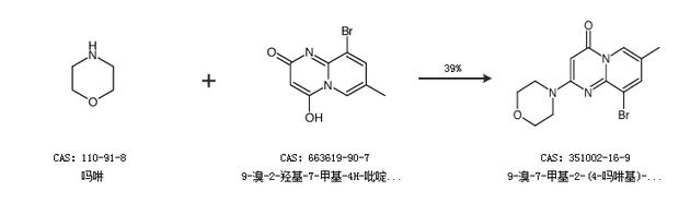 1.通过吗啉和9-溴-2-羟基-7-甲基-4H-吡啶并[1,2-a]嘧啶-4-酮合成9-溴-7-甲基-2-(4-吗啉基)-4H-吡啶并[1,2-a]嘧啶-4-酮,收率约39%;