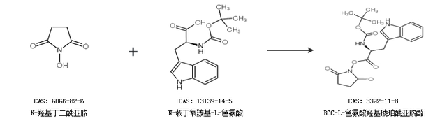 1.通过N-羟基丁二酰亚胺和N-叔丁氧羰基-L-色氨酸合成BOC-L-色氨酸羟基琥珀酰亚胺酯
