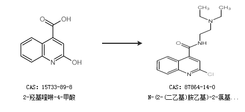 中文名称 N-(2-(二乙基)胺乙基)-2-氯基-4-喹啉甲酰胺