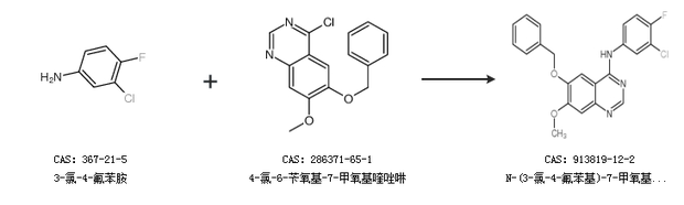 英文别名 N-(3-CHLORO-4-FLUOROPHENYL)-7-METHOXY-6-(PHENYLMETHOXY)-4-QUINAZOLINAMINE;