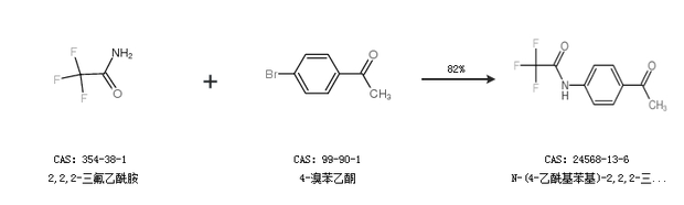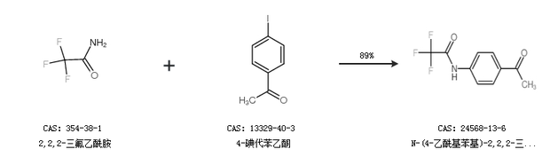 1.通过2,2,2-三氟乙酰胺和4-碘代苯乙酮合成N-(4-乙酰基苯基)-2,2,2-三氟乙酰胺,收率约89%;