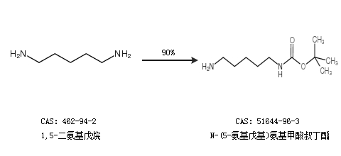 2.通过1,5-二氨基戊烷合成N-(5-氨基戊基)氨基甲酸叔丁酯,收率约90%;