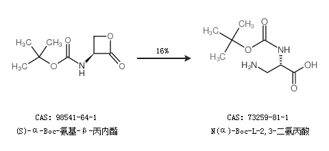 2.通过(S)-α-Boc-氨基-β-丙内酯合成N(α)-Boc-L-2,3-二氨丙酸,收率约16%;