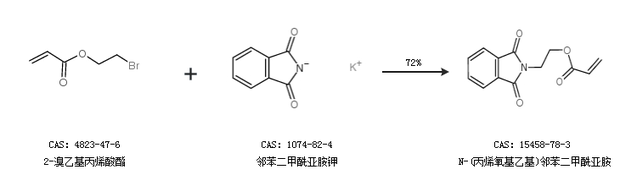 1.通过2-溴乙基丙烯酸酯和邻苯二甲酰亚胺钾合成N-(丙烯氧基乙基)邻苯二甲酰亚胺,收率约72%;