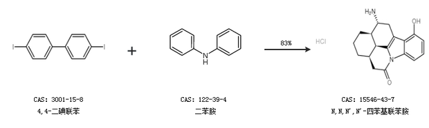 1.通过4,4-二碘联苯和二苯胺合成N,N,N'',N''-四苯基联苯胺,收率约83%;