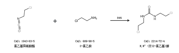 2.通过氯乙基异氰酸酯和2-氯乙胺合成N,N’-双(2-氯乙基)脲,收率约84%;