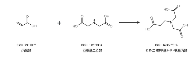 1.通过丙烯酸和亚氨基二乙酸合成N,N-二(羧甲基)-β-氨基丙酸