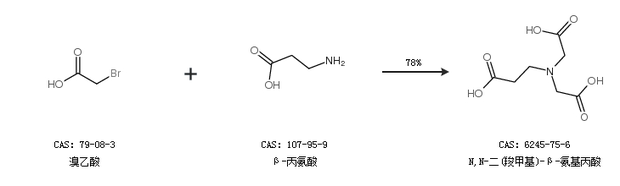 2.通过溴乙酸和β-丙氨酸合成N,N-二(羧甲基)-β-氨基丙酸,收率约78%;