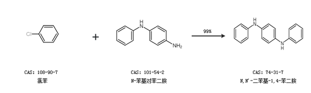 1.通过氯苯和N-苯基对苯二胺合成N,N''-二苯基-1,4-苯二胺,收率约99%;