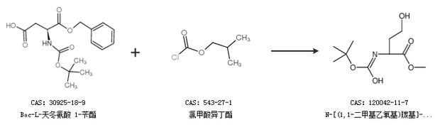1.通过Boc-L-天冬氨酸 1-苄酯和氯甲酸异丁酯合成N-[(1,1-二甲基乙氧基)羰基]-l-高丝氨酸甲酯