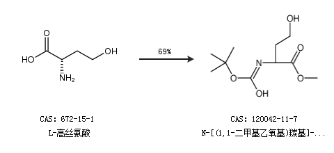 2.通过L-高丝氨酸合成N-[(1,1-二甲基乙氧基)羰基]-l-高丝氨酸甲酯,收率约69%;