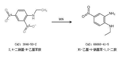 1.通过2,4-二硝基-N-乙基苯胺合成N1-乙基-4-硝基苯-1,2-二胺,收率约98%;