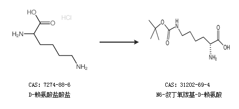 1.通过D-赖氨酸盐酸盐合成N6-叔丁氧羰基-D-赖氨酸