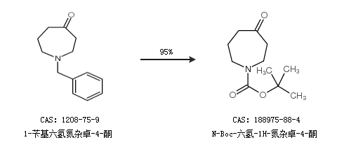 1.通过1-苄基六氢氮杂卓-4-酮合成N-Boc-六氢-1H-氮杂卓-4-酮,收率约95%;