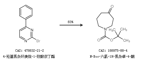 2.通过4-羟基氮杂环庚烷-1-羧酸叔丁酯合成N-Boc-六氢-1H-氮杂卓-4-酮,收率约83%;