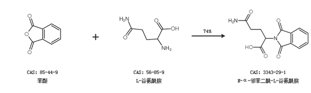 1.通过苯酐和L-谷氨酰胺合成N-α-邻苯二酰-L-谷氨酰胺,收率约74%;