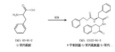 2.通过L-苯丙氨酸合成N-苄氧羰基-L-苯丙氨酰基-L-苯丙氨酸,收率约93%;