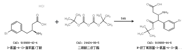 1.通过3-氨基-4-(3-溴苯基)丁酸和二碳酸二叔丁酯合成N-叔丁氧羰基-3-氨基-4-(3-溴苯基)丁酸,收率约54%;