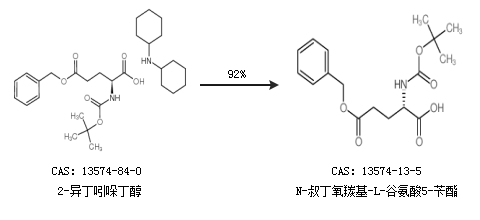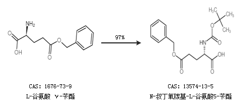 1.通过L-谷氨酸 γ-苄酯合成N-叔丁氧羰基-L-谷氨酸5-苄酯,收率约97%;