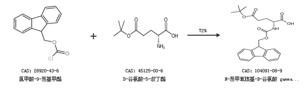 1.通过氯甲酸-9-芴基甲酯和D-谷氨酸-5-叔丁酯合成N-芴甲氧羰基-D-谷氨酸 gamma-叔丁酯,收率约72%;