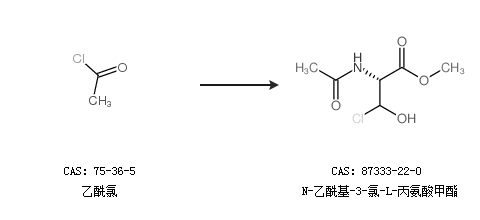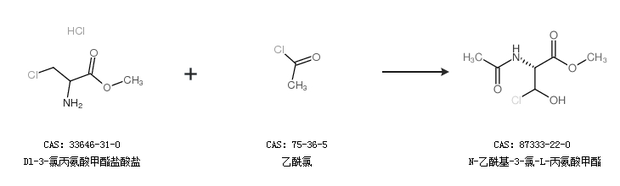 1.通过Dl-3-氯丙氨酸甲酯盐酸盐和乙酰氯合成N-乙酰基-3-氯-L-丙氨酸甲酯