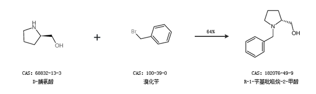 1.通过D-脯氨醇和溴化苄合成R-1-苄基吡咯烷-2-甲醇,收率约64%;