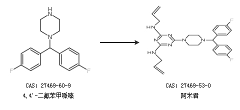 1.通过4,4''-二氟苯甲哌嗪合成阿米君