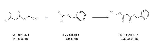 2.通过丙二酸单乙酯和氯甲酸苄酯合成苄基乙基丙二酸