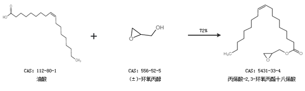 2.通过油酸和(±)-环氧丙醇合成丙烯酸-2,3-环氧丙酯十八烯酸,收率约72%;