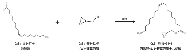 1.通过油酰氯和(±)-环氧丙醇合成丙烯酸-2,3-环氧丙酯十八烯酸,收率约88%;