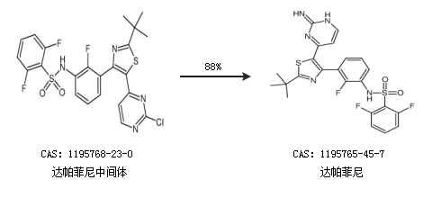 1.通过达帕菲尼中间体合成达帕菲尼,收率约88%;