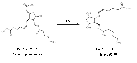 2.通过(Z)-7-[(1r,2r,3r,5s)-5-乙酰氧基-3-羟基-2-((e)-(s)-3-羟基-1-辛烯)-环戊基]-5-庚烯酸甲酯合成地诺前列素,收率约95%;