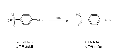 2.通过对甲苯磺酰氯合成对甲苯亚磺酸,收率约98%;