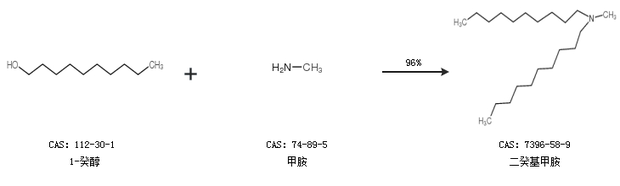 1.通过1-癸醇和甲胺合成二癸基甲胺,收率约96%;