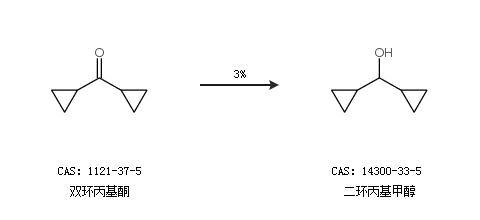 2.通过双环丙基酮合成二环丙基甲醇,收率约3%;