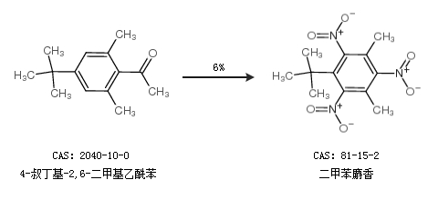 2.通过4-叔丁基-2,6-二甲基乙酰苯合成二甲苯麝香,收率约6%;